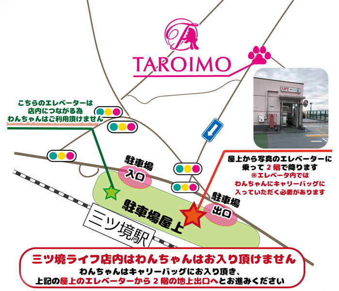 - 店舗ビル共有部分は、必ずキャリーバッグ、もしくは頭までかぶるスリングの中に入れて、店内までお越し下さい。